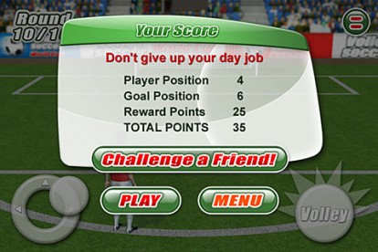 Ad ogni goal, ovviamente, seguirà l’incremento del proprio punteggio, pubblicabile su Facebook o Twitter attraverso il servizio OpenFeint.
