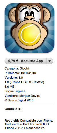 Su AppStore è disponibile il gioco Monkey Tennis.