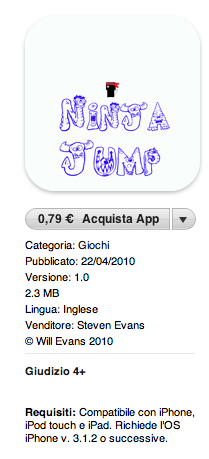 Anche a 12 anni si può sviluppare un’applicazione iPhone, come dimostra il caso di Ninja Jump. (0,79€).