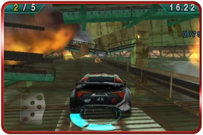 Dal punto di vista grafico il titolo risulta molto apprezzabile, sia nel design delle macchine che in quello dei circuiti. Certo, la riduzione rispetto alle controparti su console HD lo rende sicuramente meno “appariscente”, così che gli effetti particellari e le esplosioni non riescono a restituire perfettamente il feeling necessario. Nonostante questa drastica opera di riduzione degli effetti, il gioco soffre di occasionali rallentamenti, soprattutto in corrispondenza delle trappole esplosive attivate lungo la gara.