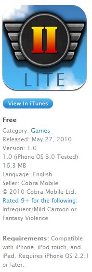 Segnaliamo la presenza su AppStore della versione lite di iBomber II, sequel di iBomber, titolo davvero originale e di grande successo su iPhone.