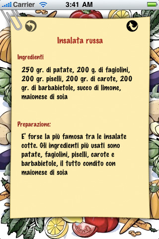 • Possibilità di condividere le ricette via Email e via SMS (SMS Solo per iPhone)
