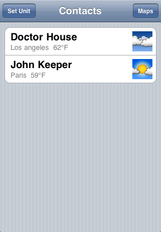 Questa applicazione mostra i contatti con l’icona meteo relativa alle previsioni della città memorizzata nella loro scheda
