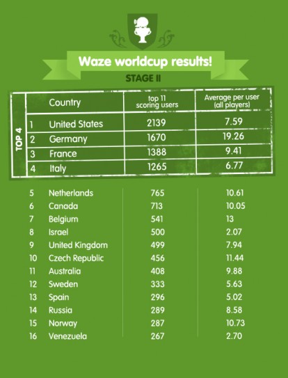 L’italia è riuscita a superare anche questo scaglione, e fa quindi parte delle 4 nazioni che si giocheranno la vittoria al concorso mondiale di Waze.