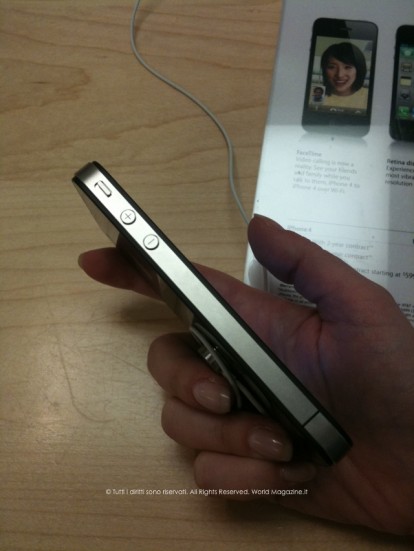 Questi iPhone 4 appena messi sul bancone presentano il bordo in alluminio più opaco e meno lucido rispetto ai precedenti, proprio come confermato da altri utenti che in questi giorni si son fatti sostituire il dispositivo e che farebbe pensare al fatto che Apple stia applicando qualche tipo di materiale isolante per limitare il problema di ricezione.