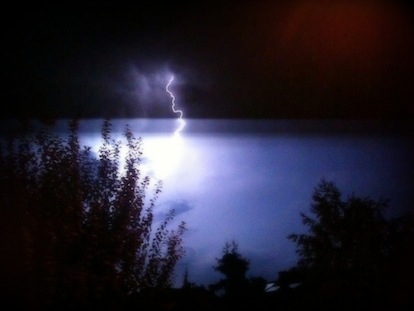 Nella terza ed ultima foto, probabilmente la più carina di tutte, sono stati catturati dall’obiettivo della fotocamera dell’iPhone alcuni lampi.