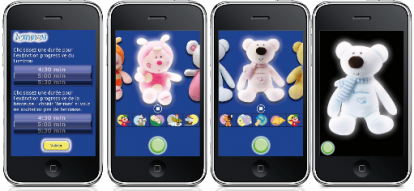 2 / Scegli il tuo luminou e la tua ninna nanna. Per aiutarvi a scegliere la ninnananna, sarà presente un piccolo pulsante a schermo.