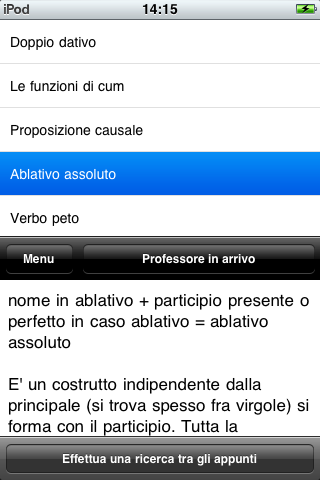 - appunti di grammatica varia in cui è possibile anche fare ricerche personalizzate inserendo la cosa che si vuole sapere (ad esempio voglio cercare cosa è l’ablativo assoluto, scrivo “ablativo assoluto”)
