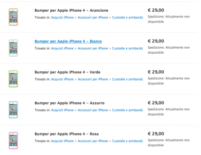Aggiornamento 2: come segnalatoci nei commenti, l’unica novità attualmente individuata riguarda i Bumper. Le custodie sono ora disponibili in diverse colorazioni, al prezzo di 29€. Tuttavia, per ora non è possibile procedere con l’ordine online del prodotto poichè le spedizioni non sono ancora disponibili.