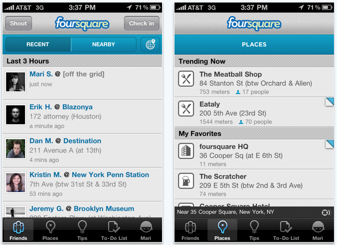 Oggi è stato rilasciato un nuovo aggiornamento che porta l’app alla versione 2.1. Ora è possibile ricevere dei ping dai propri amici non appena essi aprono l’applicazione Foursquare; inoltre il tab Friends consentirà di tenere costantemente sott’occhio gli ultimi avvenimenti informandoci su quello che sta accadendo attorno a noi. La nuova versione risulta notevolmente migliorata dal punto di vista delle performance e della stabilità ed è stata inclusa la possibilità alle applicazione esterne di linkare una pagina in Foursquare.