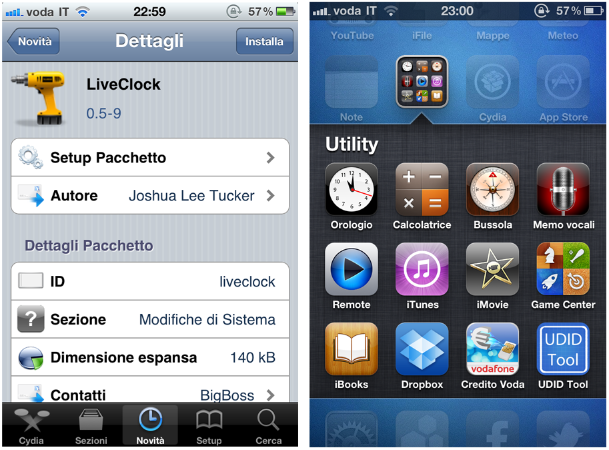 LiveClock è disponibile gratuitamente in Cydia tramite la repo di BigBoss.