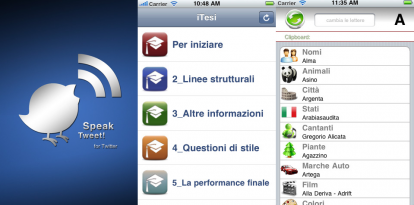 Con questa rubrica, iPhoneitalia vuole proporvi alcune brevi recensioni delle applicazioni uscite recentemente su App Store. Oggi si parla di social network, di soluzioni per il famoso gioco “nomi, cose e città” e di una pratica guida per scrivere la vostra tesi.