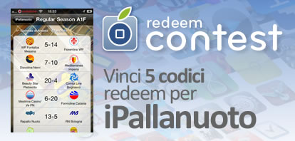 iPhoneItalia Redeem Contest è il nostro concorso quotidiano in cui mettiamo in palio codici promozionali per scaricare gratuitamente e legalmente applicazioni e giochi da App Store. Oggi mettiamo in palio 5 codici redeem per l’applicazione iPallanuoto, disponibile su App Store al prezzo di 0,79 €.