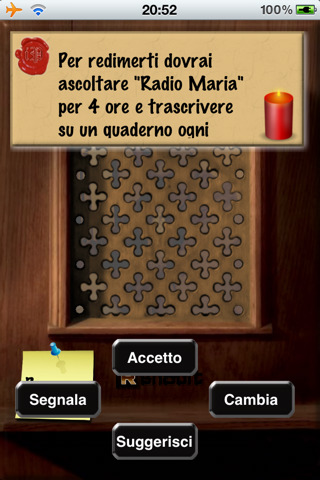N.B.:Questa applicazione non rappresenta una vera redenzione dal peccato; per l’assoluzione bisogna rivolgersi esclusivamente ad un sacerdote. Ogni riferimento a persone o cose realmente esistite è puramente casuale.