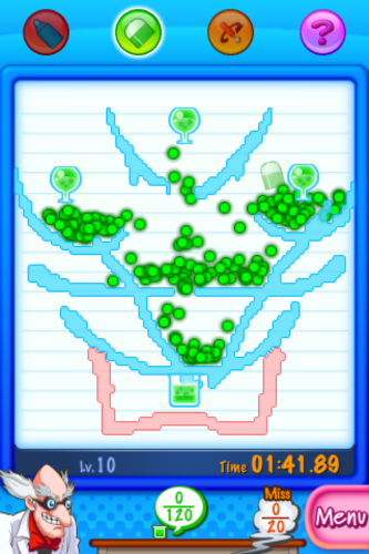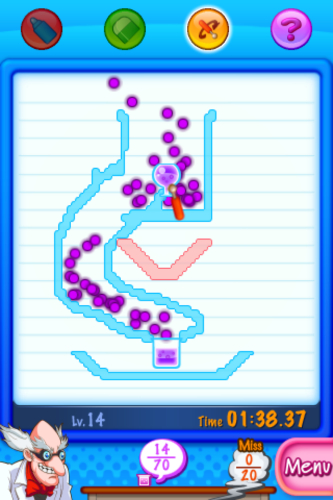 Doodle Lab 101 ci metterà di fronte ad un puzzle game semplice ma divertente. All’interno dei 70 stage presenti, suddivisi per difficoltà , il nostro compito sarà quello di disegnare percorsi affinché piccole particelle colorate, raggiungano la destinazione predefinita. Per creare questi percorsi, avremo a disposizione tre strumenti principali: la matita, la gomma e un pratico accessorio per smuovere le particelle.