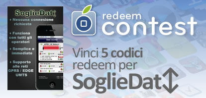 iPhoneItalia Redeem Contest è il nostro concorso quotidiano in cui mettiamo in palio codici promozionali per scaricare gratuitamente e legalmente applicazioni e giochi da App Store. Oggi mettiamo in palio 5 codici redeem per l’applicazione SoglieDat↕, disponibile su App Store al prezzo di 0,79 €.