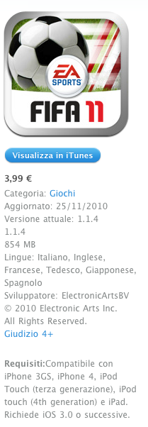 E’ stato rilasciato da poche ore il nuovo update per Fifa 2011 di EA, il famoso gioco del calcio per i nostri iDevices.