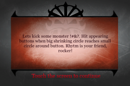 Le azioni che effettuerà Mr.Lordi saranno scandite dal nostro tocco sui pulsanti rossi a tempo di musica, quando il cerchio esterno sarà in prossimità del pallino interno.