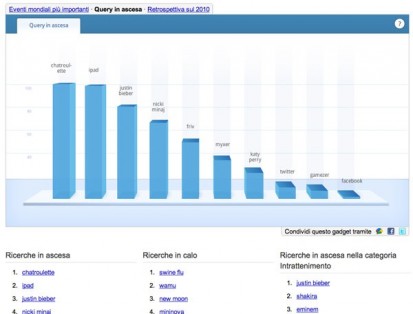 Google, come ogni anno, ha stilato la lista dei termini più ricercati nel 2010, divisi per categorie.