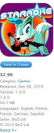 Staraoke è uno show televisivo sicuramente adatto ad un pubblico di più piccoli. L’applicazione permette di cantare e di mantenere entro un percorso definito il nostro protagonista. Potete scaricarla al prezzo di 0,79€ a questo indirizzo.