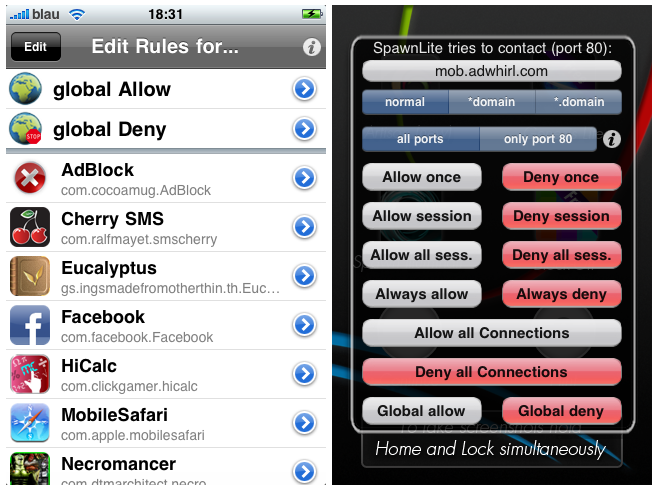 Firewall IP è il primo ed unico firewall per i dispositivi iOS. Grazie a questa applicazione sarà possibile filtrare, selezionando opportunamente quali acconsentire e quali no, le varie connessioni che saranno richieste dalle applicazioni durante il normale utilizzo dell’iPhone. Grazie ad esso l’utente potrà sempre essere aggiornato sulle ultime richieste effettuate dai software eseguiti sul dispositivo (ad esempio richiesta dell’UDID, dell’accesso ai Contatti, ecc) in modo tale da garantire la sicurezza dei dati personali.
