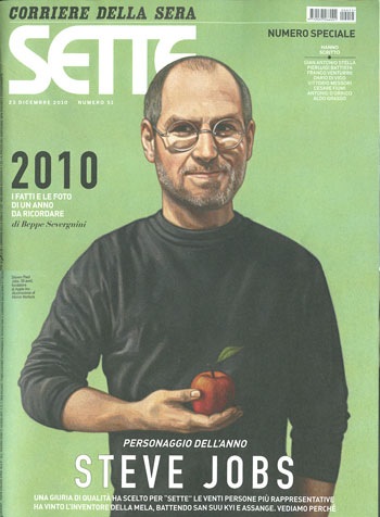 Steve Jobs si aggiudica la copertina di “Sette”, importante settimanale italiano facente parte del gruppo Corriere della Sera. Insomma, Jobs, in Italia, non è più solo un fenomeno per addetti ai lavori, ma inizia ad interessare anche profani del settore che, fino ad un paio di anni fa, nemmeno sapevano chi fosse.