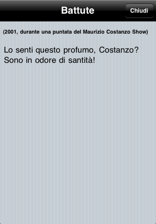 In questa app, infatti, non trovate le solite informazioni su Silvio Berlusconi, ma il suo spirito e la sua allegria: battute, video e contenuti speciali. Sicuramente non rimarrete indifferenti…(( sono le dirette parole dell’autore, noi di iPhoneitalia non parliamo di politica!)