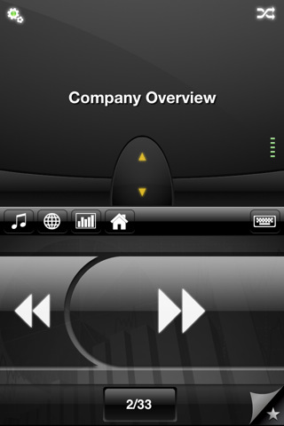 - Modalità presentazione: Quando si esegue una presentazione (PowerPoint), l’applicazione passa automaticamente alla schermata di presentazione. Di default il programma viene fornito con una versione base che include controlli di navigazione, i titoli delle diapositive e numeri di diapositiva. Una versione Pro è disponibile come un acquisto in-app toccando l’icona della stella. La versione Pro include altri controlli, le note di presentazione, un timer di presentazione, e un selettore scorrevole.