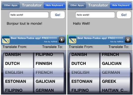 Sviluppato da Kenneth, Translator consentirà di tradurre una parola o un testo basandosi su Google Translate (ricordiamo che proprio ieri è stata rilasciata l’applicazione ufficiale di questo servizio in App Store). Potrete sia inserire manualmente una parola oppure copiare il testo di una pagina web ed incollarlo nell’applicazione per tradurlo in una delle lingue supportate.