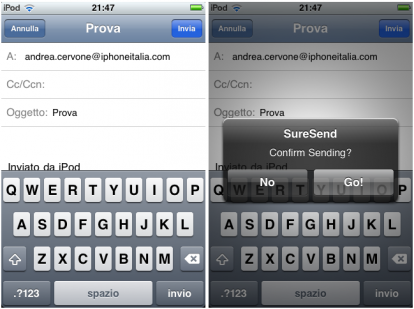 Volete essere sicuri di non inviare mail incomplete o magari a destinatari sbagliati? Benissimo! È stato da poco rilasciato in Cydia un nuovo tweak, di nome Mail SureSend, che farà comparire un pop up di conferma quando si cercherà di inviare una nuova email.