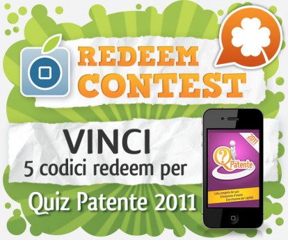 iPhoneItalia Redeem Contest è il nostro concorso quotidiano in cui mettiamo in palio codici promozionali per scaricare gratuitamente e legalmente applicazioni e giochi da App Store. Oggi mettiamo in palio 5 codici redeem per l’applicazione Quiz Patente 2011, disponibile su App Store al prezzo di1,59 €.