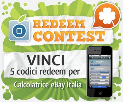iPhoneItalia Redeem Contest è il nostro concorso quotidiano in cui mettiamo in palio codici promozionali per scaricare gratuitamente e legalmente applicazioni e giochi da App Store. Oggi mettiamo in palio 5 codici redeem per l’applicazione Calcolatrice eBay Italia, disponibile su App Store al prezzo di 1,59 €.