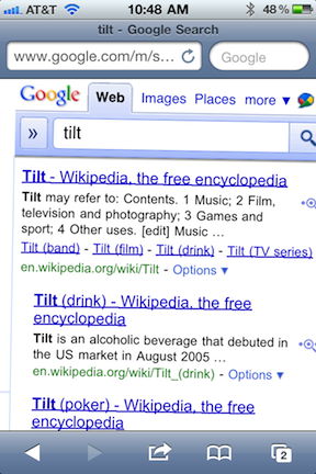 Tutto quello che bisogna fare è andare su google.com e cercare la parola “tilt”. Dopo aver effettuato la ricerca, noterete una leggera inclinazione dello schermo…