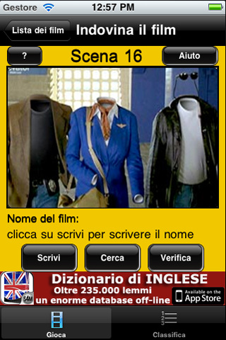 Indovina Film! è una semplice applicazione per veri cinefili ! L’applicazione è gratuita e ci chiederà di indovinare il film dopo aver visto un fotogramma o dopo aver “visto” attori invisibili.