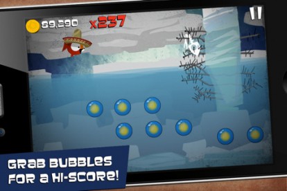 Le meccaniche di gioco, come già anticipato, risultano davvero simili al ben noto Tiny Wings. Tenendo premuto il dito sul touchscreen manderemo il nostro piccolo pesciolino sul fondale, mentre rilasciando il dito, faremo schizzare un breve balzo fuori dall’acqua. Nell’eseguire questi semplici movimenti dovremo raccogliere delle piccole sfere colorate, che permetteranno di incrementare il nostro punteggio, facendoci aggiudicare, alla fine di ogni stage, medaglie d’argento, d’oro o di bronzo a seconda della nostra performance.