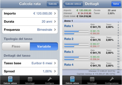L’applicazione di oggi è myMutuo, che passa da 3,99€ a 1,59€ soltanto per la giornata odierna ed in occasione del rilascio della versione 4.0 per iPad. Si tratta di un’applicazione molto utile per chi deve decidere di aprire un mutuo e calcolare diversi parametri. myMutuo è una calcolatrice veloce per stimare le rate di un mutuo o un prestito, e per capire come varieranno nel tempo. Da oggi potrai sapere:
