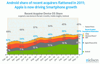 Secondo un’indagine condotta da Nielsen, nel mese di maggio la crescita dell’iPhone negli USA è stata superiore a quella dei terminali Android.