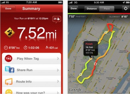 Buona la possibilità di usufruire anche di servizio on-line sul sito Nike, la possibilità di rivedere il proprio percorso è disponibile solo sul proprio dispositivo o nella sezione personale del sito Nike+ realizzato molto bene offre la possibilità di una animazione del percorso visibile sulla mappa con andature, velocità e pendenza. Applicazione consigliata per chi gradisce monitorare la propria attivita’ saltuaria o regolare gradendo funzioni semplici ed immediate senza troppe esigenze specifiche.