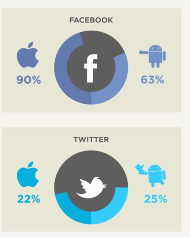 Onavo ha analizzato un campione di 100.000 utenti, equamente divisi tra iPhone e Android. Dall’analisi emerge che il 90% degli utenti iPhone ha installato l’applicazione Facebook e che il 10% di loro la utilizza come app principale, contro, rispettivamente, il 63% e il 5% degli utenti Android.