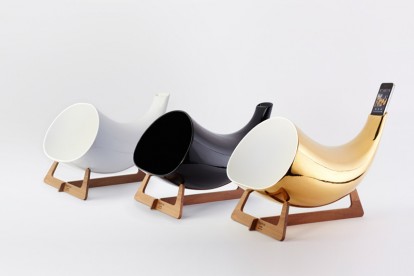Si tratta di uno speaker acustico a forma di cono che consente di collegare l’iPhone e di aumentarne sensibilmente il volume della riproduzione audio. Il prodotto è stato presentato al Salone Satellite della Settimana del Mobile a Milano ed è stato costruito in legno e ceramica da Enrico Bosa e Isabella Lovero.