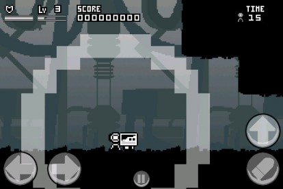Anche il nostro personaggio, appena abbozzato e disegnato in bianco e nero, è armato di una mitraglietta, utile per farsi strada all’interno dei vari livelli di gioco. Non vi somiglia a Barry di Halfibrick?
