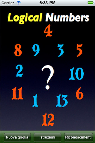 Logical Numbers è un interessante gioco di logica disponibile per iPhone in cui avremo delle griglie suddivise in diverse colonne. Ogni griglia conterrà al suo interno delle caselle contenenti dei numeri composti da massimo 3 cifre. All’inizio di ogni partita i numeri non saranno presenti nelle varie caselle, mentre in altre il numero è momentaneamente sostituito da un punto interrogativo. Lo scopo sarà quello di riempire tutte le caselle vuote trovando ed inserendo i numeri mancanti. Questo compito tuttavia sarà particolarmente difficile, in quanto per riuscire ad identificare i numeri da inserire in ciascuna casella dovremo scoprire ed intuire la logica in base a cui i numeri saranno stati disposti.