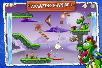 Come in tutti i prodotti dello stesso genere, ogni nostro lancio, prima di finire in bocca al drago, dovrà soddisfare dei requisiti: acciuffare quante più stelline possibili. Ogni stage presenta le classiche tre stelle e, a seconda di quante ne raccoglieremo ci verrà assegnato un punteggio. Inoltre, per tre volte avremo la possibilità di dare una sbirciatina alla soluzione dell’area di gioco. In quest’ultimo caso la CPU ci indicherà dove posizionare esattamente gli oggetti per far giungere il cibo nella bocca del dragone. Quello che un po’ mi infastidisce è la possibilità di acquistare altre “soluzioni” attraverso in-app purchase. Posso consigliarvi quindi di non sprecare questi tre aiuti nei primi livelli di gioco, e di spremere le meningi il più possibile anche nei livelli avanzati, così da non dover sborsare altro contante per superare i livelli più ardui.