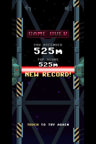 Dovremo guidare un piccolo gattino stilizzato (credo sia un gattino, ma non ne ho ancora la certezza) a scalare le vette infinite di un laboratorio segreto (credo sia un laboratorio segreto, ma non ne ho ancora la certezza). Insomma, personaggio e background passano davvero in secondo piano rispetto alla estrema facilità di gioco. Per saltare da un muro all’altro sarà sufficiente tappare lo schermo quando il gatto “atterrerà” sul muro. Dovremo tappare velocemente perché un pericoloso raggio laser ci seguirà senza sosta, finendo per abbrustolirci nel caso in cui dovessimo arrestare la nostra folle corsa.