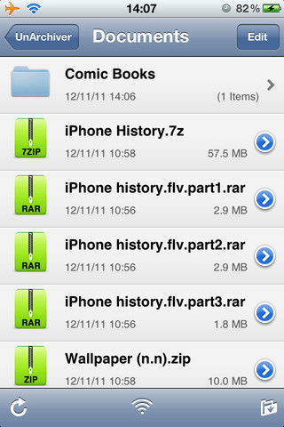 UnArchiver è un’applicazione utile per la gestione di pacchetti RAR ed altri formati da spacchettare direttamente da iPhone, iPod touch o iPad. E’ stata progettata per gestire numerosi formati, come anche nomi di file in caratteri stranieri, creati con sistemi operativi non inglesi. Tra i formati supportati troviamo quelli Zip, Tar-GZip, Tar-BZip2, RAR, 7-zip e molti altri ancor più datati. Applicazione universale.