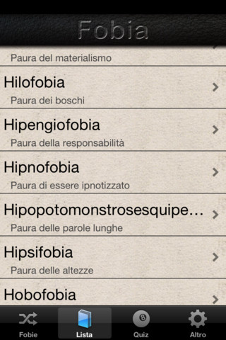 iFobia è un’applicazione che permetterà di avere a propria disposizione una guida completa a tutte le fobie e le paure da consultare direttamente da iPhone. Al suo interno troveremo tutte le paure, anche quelle più strane, le più sconosciute, assurde e le più divertenti; potremo esplorare il mondo delle fobie e rispondere a tutte le domande che ci verranno proposte dal quiz incluso nell’app, ma anche condividere le fobie che più ci hanno impressionato su Facebook, con la possibilità inoltre di visionare le immagini più rappresentative di ogni fobia, funzionalità che tuttavia richiederà una connessione ad Internet.