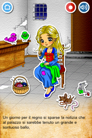 Le illustrazioni di Cenerentola sono state realizzate da una fumettista contemporanea che ha saputo tradurre i testi in divertenti e coloratissime immagini. tutti i personaggi della storia: Cenerentola, il principe, gli animali e altri elementi delle scene, sono stati realizzati come stickers e quindi sono trascinabili sullo schermo per il divertimento dei bambini. Per procedere nella storia è sufficiente un piccolo scorrimento del dito sullo schermo, nella più classica delle interazioni col vostro iPhone / iPod, cambieranno testi e immagini. La riproduzione vocale del testo viene attivata da una semplice pressione sull’icona del sonoro.