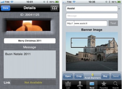 Per vedere i dettagli di un banner è sufficiente selezionarlo nella lista che si sta scorrendo e sul display compare un’area con l’immagine del Banner, il codice identificativo, il titolo, il messaggio ed un bottone per accedere al link web.