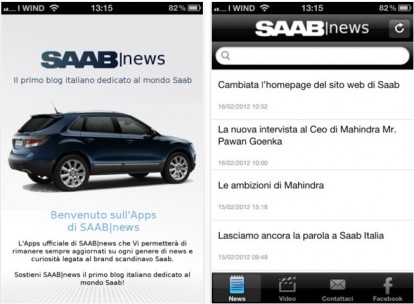 Sei un appassionato del settore automotive? Un addetto ai lavori del mondo dell’auto? Un fan del brand svedese Saab? Con la nuova applicazione SAAB|news potrai conoscere le ultime news legate al marchio scandinavo Saab, gli eventi, le curiosità, la storia e molto, molto altro ancora… Grazie all’App ufficiale di SAAB|news potrete non solo rileggere le ultime notizie legate a Saab, ma anche vedere gli ultimi video proposti dal primo blog italiano sul mondo Saab e avere un contatto diretto con lo Staff grazie ad una nuova sezione dedicata ed al collegamento diretto con la sua pagina Facebook.