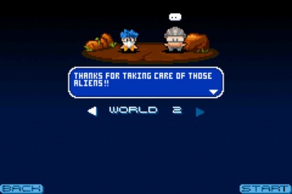 Sulla grafica abbiamo già accennato. Pochi pixel colorati danno origine ad un mondo di gioco particolare e particolareggiato, anche in funzione dei diversi mondi in cui si svolgerà l’azione di gioco. Le navicelle nemiche che ci attaccheranno sono formate da pochissimi pixel, ma non per questo risultano scarni. Anche i boss di fine stage ci appariranno come una “costruzione” di pochi pixel, davvero bella a vedersi e di grande impatto, per gli amanti della vecchia scuola. Anche il reparto sonoro è devoto alla retrò school, con un sonoro minimale, ma adatto all’intero prodotto.